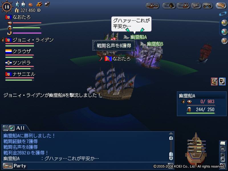 討伐数を稼ぐために、2隻の幽霊船を狙います。