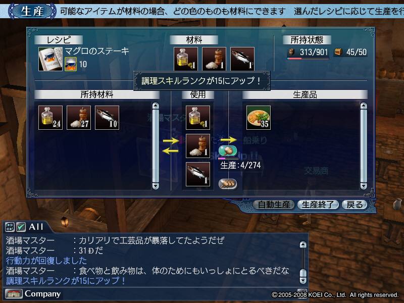 主要生産スキルで最後に残ってしまった調理をカンストすべく