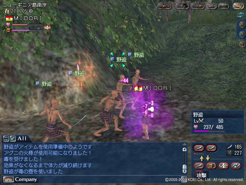 敵は5人全員前衛で、アイテムは主に目潰しと毒を使ってきます。