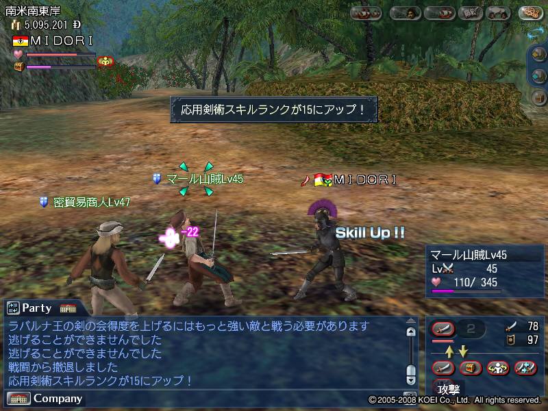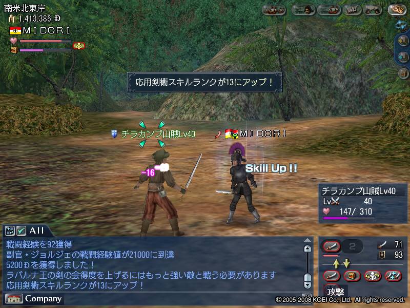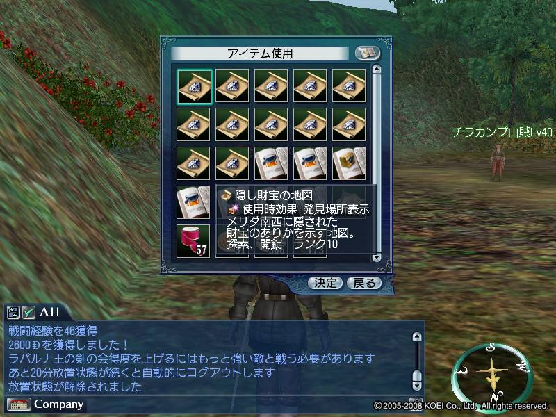 基本的にはチラカンプ山賊Lv40を狩っていますが、盗賊団Lv41が