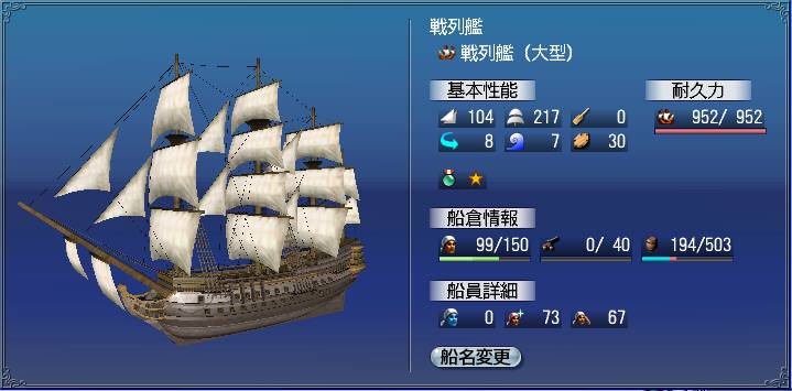 レベルが足りないため、やっぱり戦列艦だよねという結論になりました。