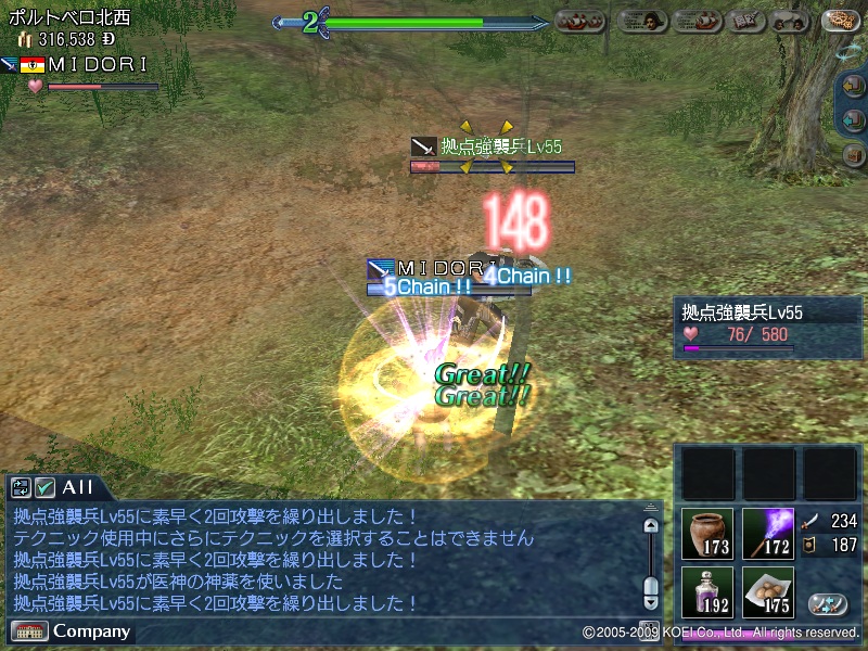 通常1回の戦闘でもらえる技巧度は2ですが、チェーンを出す